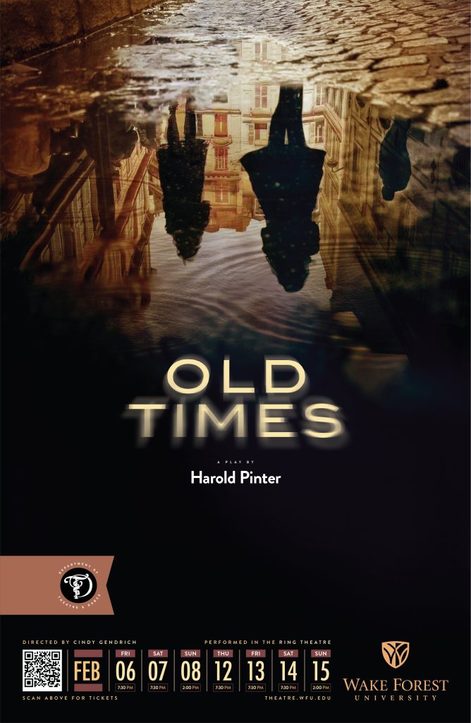 Old Times. Harold Pinter’s three-person masterpiece about jealousy, sex, and the power of memory. Gripping. Elusive. Funny. Elemental.